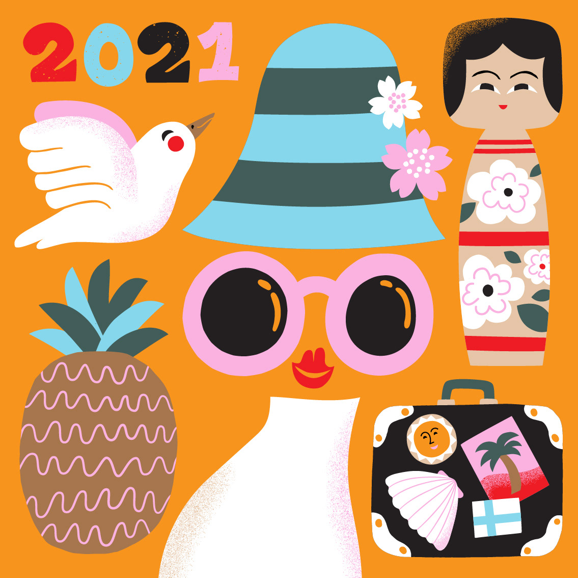 The illustrations are inspired by my own travels and adventures around the World. Each month represents a different city that I have visited and have fond memories of.