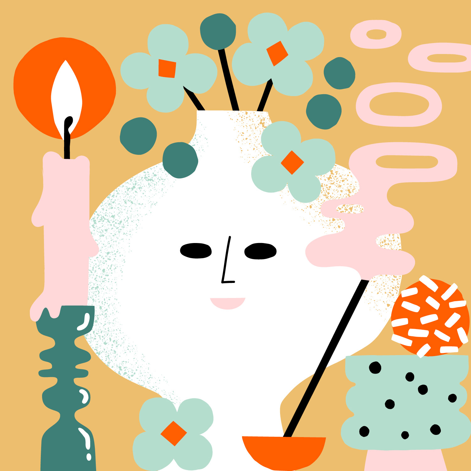 12 seasonal illustrations for a 2023 wall calendar. The calendar is inspired by the idea of staying in and relaxing at home.