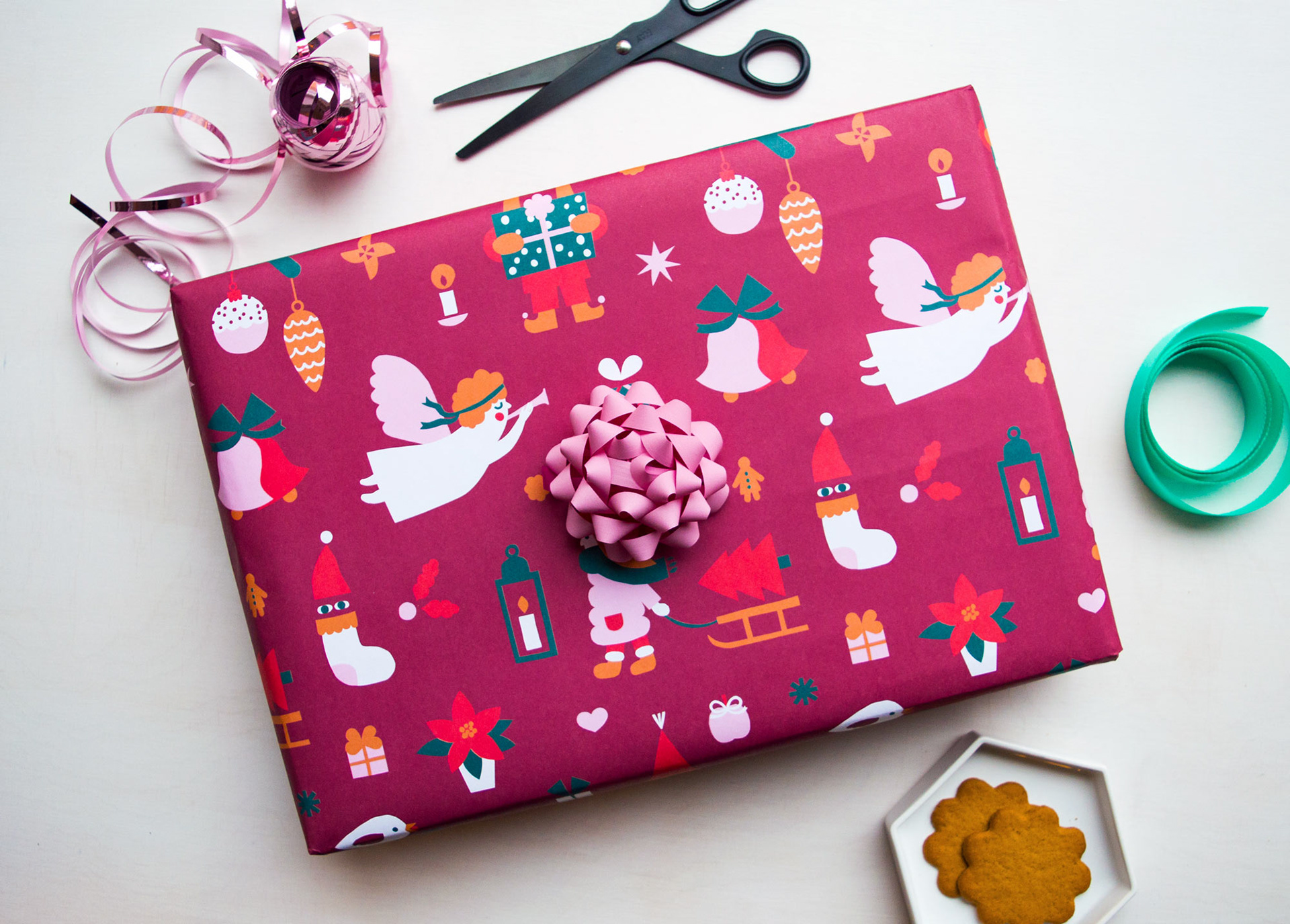 Pattern design for two gift wraps for the Holiday season 2016. The patterns take inspiration from Finnish Christmas traditions and the cold winter season. "Joulutaika" means Christmas Magic in Finnish.