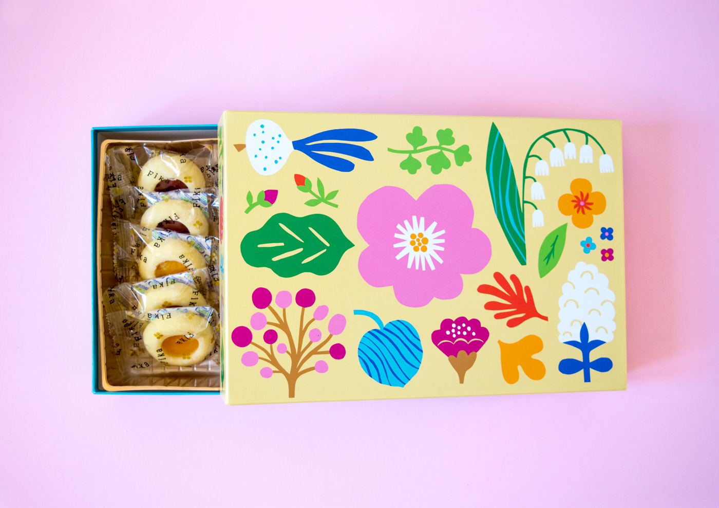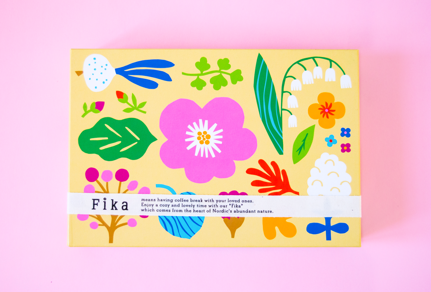 Floral illustration for a special edition of Spring cookie packages. Available at Fika Scandinavian Shop at Isetan Dept Store in Tokyo, Japan.